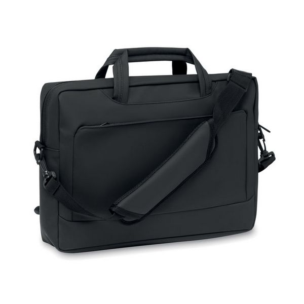 Torba za dokumente za prijenosno računalo od 15 inča od mekog PU materijala s podstavljenim stražnjim dijelom. Jedan glavni podstavljeni pretinac za prijenosno računalo i prednji džep s patentnim zatvaračem s nekoliko pretinaca. Podstava od 210D RPET poliestera. 2 ručke i jedan podesivi i odvojivi remen za rame sa zaštitom i držačem za kolica na stražnjoj strani.