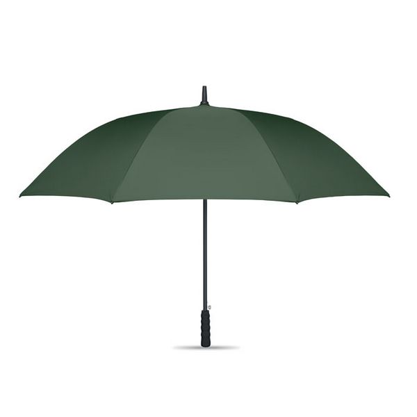 Kišobran od 27 inča s automatskim otvaranjem, otporan na vjetar, izrađen od 190T RPET svile. Drška i rebra od fiberglasa. Ručka od pšenične slame i recikliranog ABS-a. Plastični vrh i vrh.