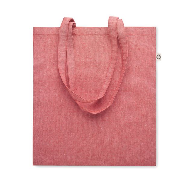 Vrećica za kupovinu od recikliranog pamuka (80% reciklirani pamuk, 20% pamuk) s dugim ručkama. 140 gr/m².