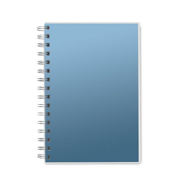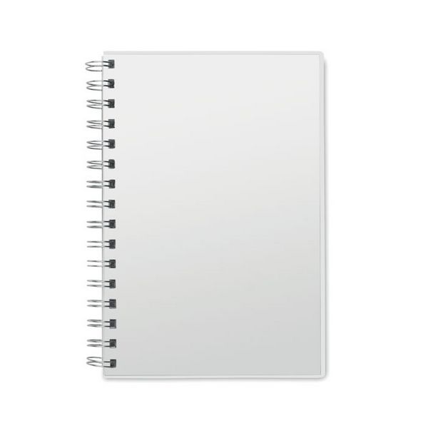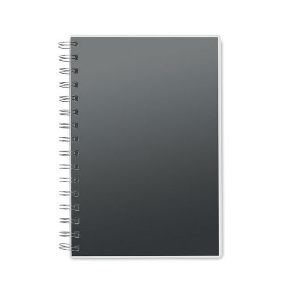 Bilježnica A5 formata s RPET koricama. Dvostruka žica. 160 recikliranih bijelih liniranih stranica (80 listova).