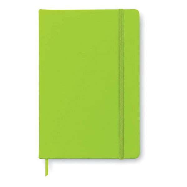 Bilježnica A5 formata s tvrdim PU koricama. Uvezana. 192 stranice od običnog recikliranog papira (96 listova). Odgovarajuća elastična traka za zatvaranje i vrpca za označavanje stranica. FSC® certificirano | FSC MIX CREDIT, P7.1, FSC-C213206