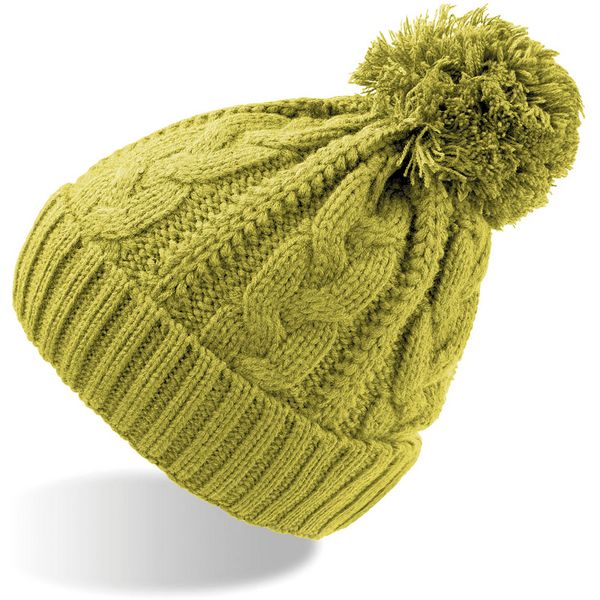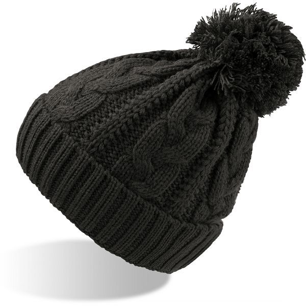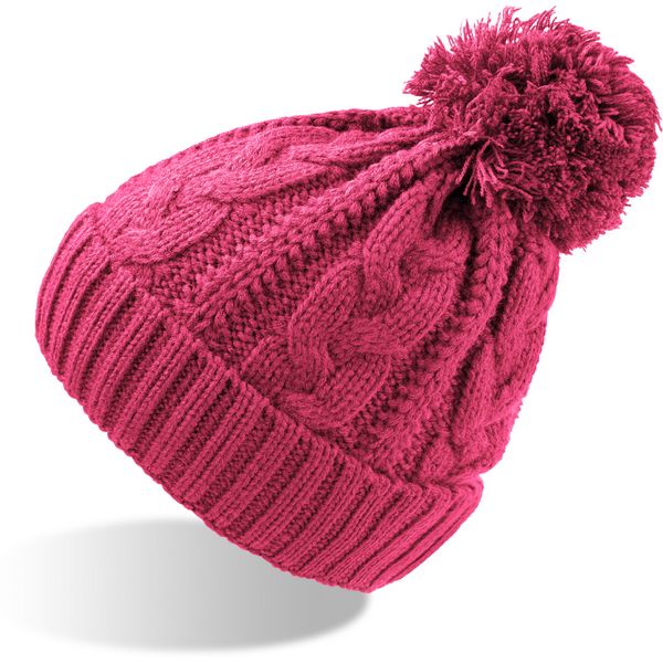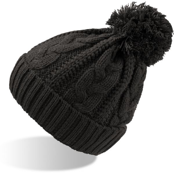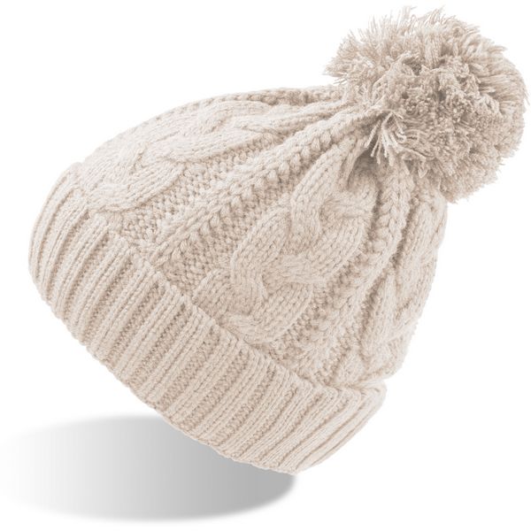 Široki rebrasti rub, kabelski uzorak, grubo pletena površina, iznutra: s trakom od flisa, veliki pompon, mogućnost skidanja etiketeMaterijal: