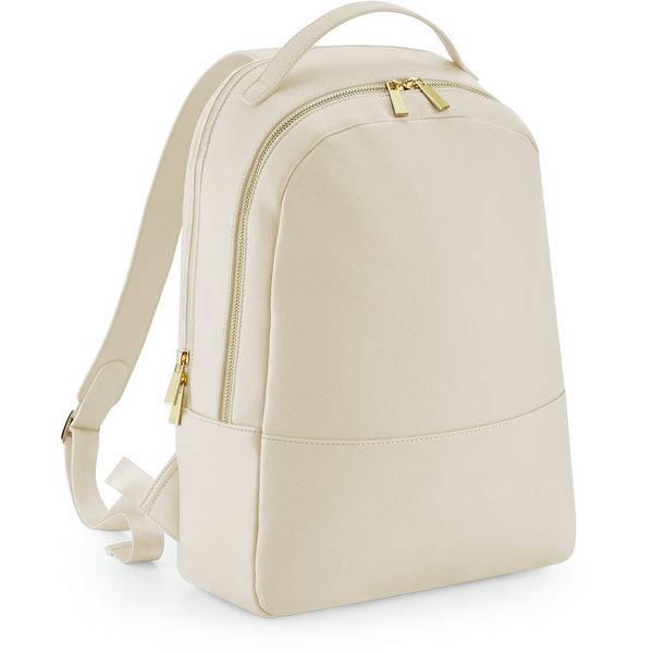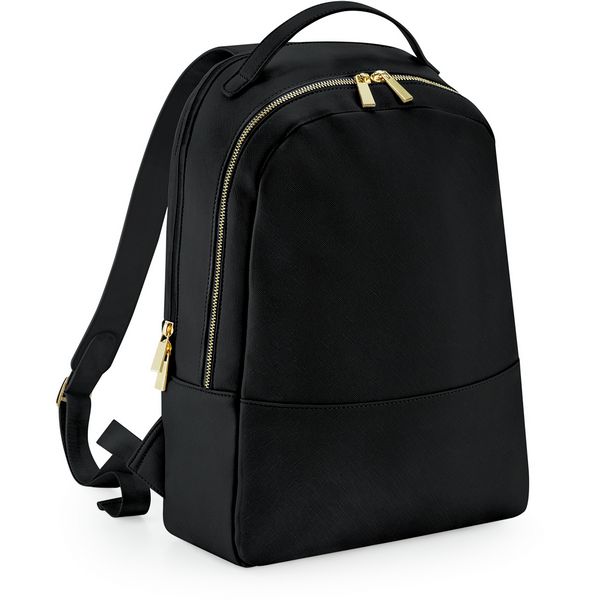 Traka za pričvršćivanje na prtljagu, ručka, podesive naramenice, sjajni zlatni patentni zatvarači, unutarnji džep s patentnim zatvaračem, glavni pretinac s patentnim zatvaračem, podstavljeni pretinac za prijenosno računalo pogodan za prijenosna računala do max. Materijal: