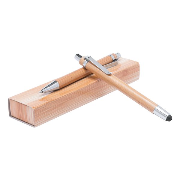Bamboo pen set with touch ballpoint pen and mechanical pencil, in gift box. With blue refill and 0,7 mm leads.Veličina proizvoda: