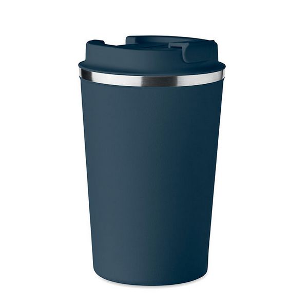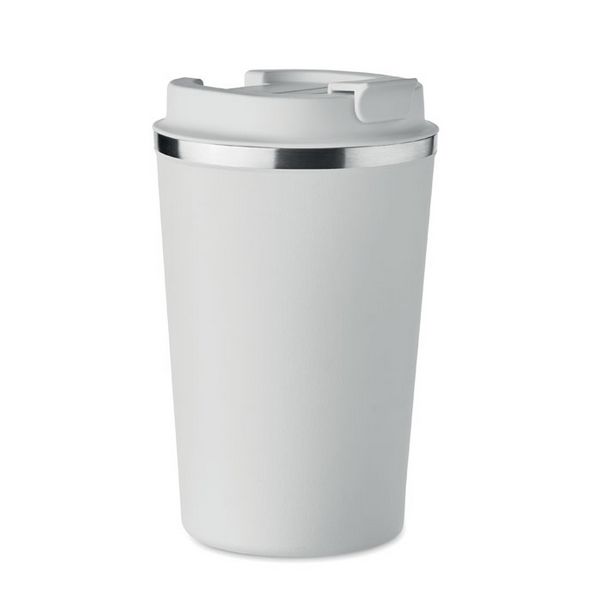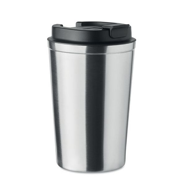 Dvoslojna čaša od nehrđajućeg čelika s PP poklopcem. Kapacitet: 350 ml. Ne propušta.