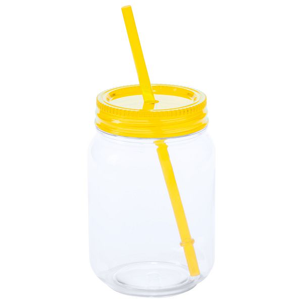 Transparent plastic jar cup with coloured lid and straw, 600 ml.Veličina proizvoda: