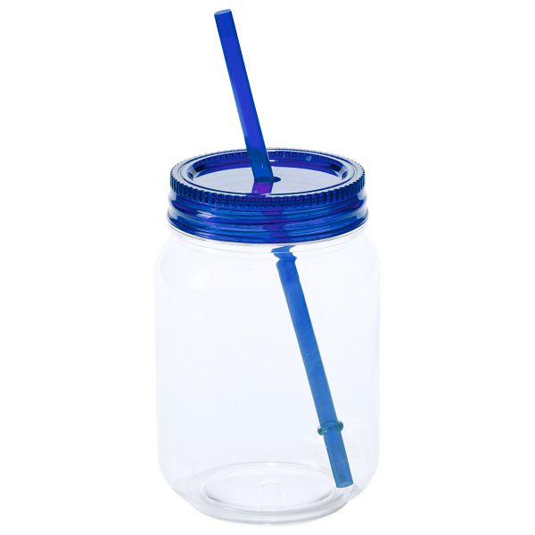 Transparent plastic jar cup with coloured lid and straw, 600 ml.Veličina proizvoda: