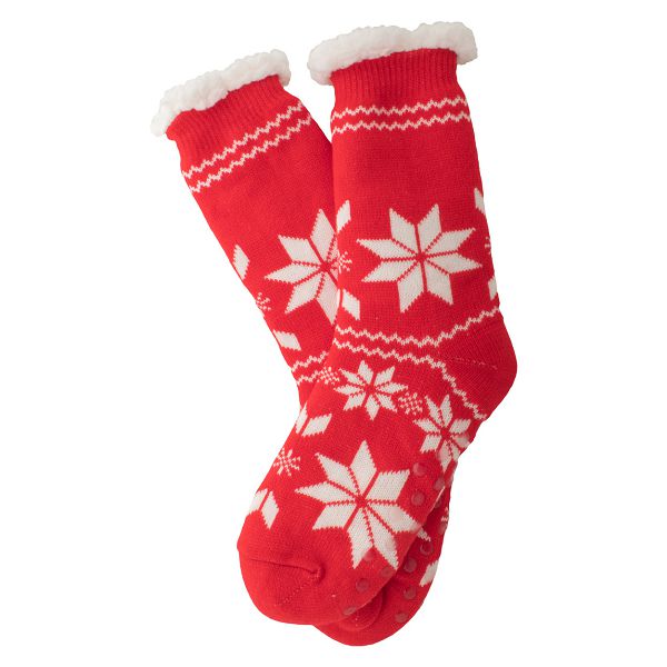 Polyester Christmas socks with non-slip sole. One size fits all (36-43).