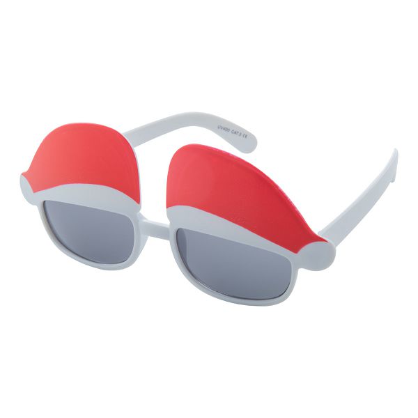 Plastic sunglasses with Santa hats and UV 400 protection.