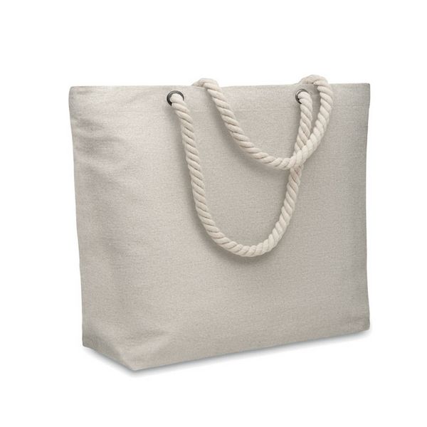 Torba za plažu ili kupovinu od recikliranog pamuka (80% reciklirani pamuk, 20% obični pamuk) s ručkama od vrpce. 220 gr/m².