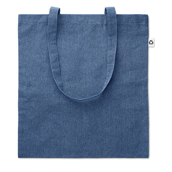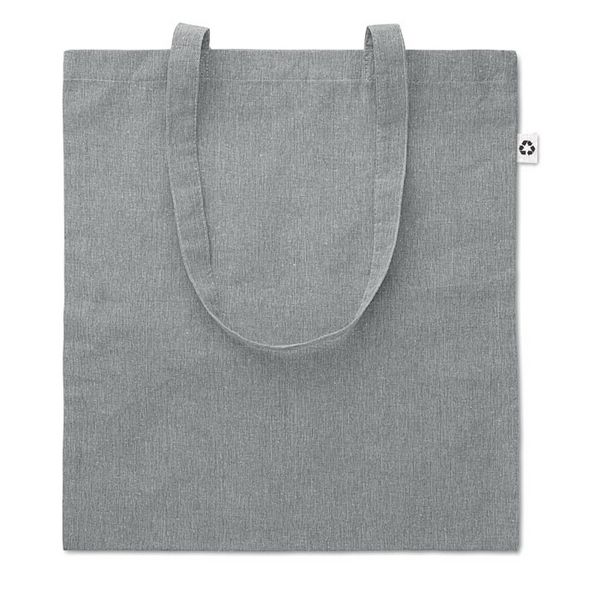 Dvobojna torba za kupovinu od recikliranog pamuka (20%) i recikliranog poliestera (80%) s dugim ručkama. Otprilike 140 gr/m². Ovaj se artikl može skupiti nakon ispisa.