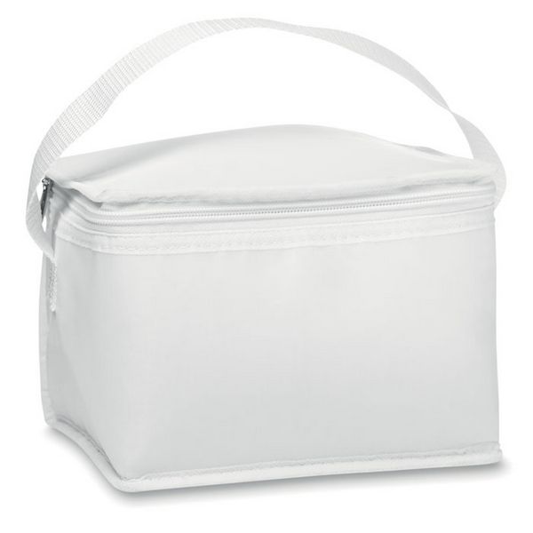 Hladnja torba za 6 limenki od 210 poliestera. S bijelim netkanim obrubima. 80gr/m². Izolacijski materijal: pjena laminirana aluminijskom folijom. Kapacitet 3L.