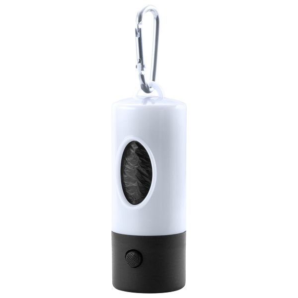 Plastic dog waste bag dispenser with 1 LED flashlight, 15 bags and aluminium carabiner. With button cell batteries.Veličina proizvoda: