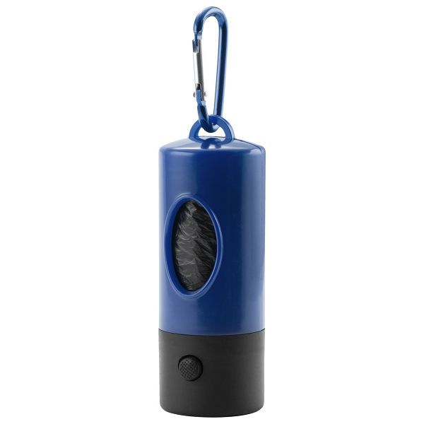 Plastic dog waste bag dispenser with 1 LED flashlight, 15 bags and aluminium carabiner. With button cell batteries.Veličina proizvoda:
