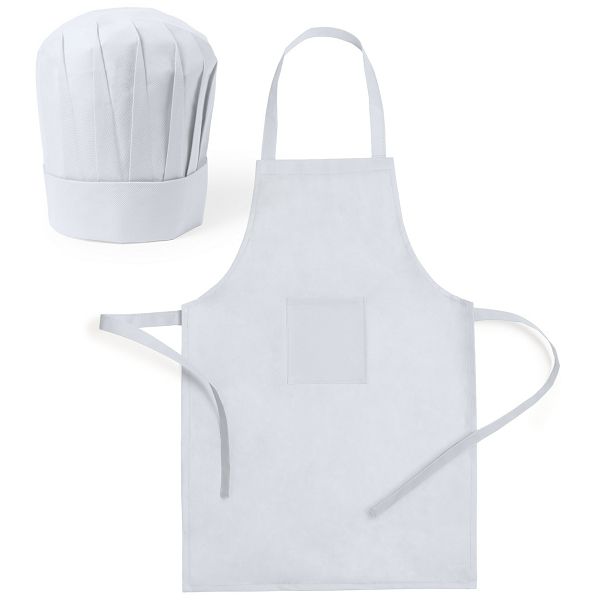 Chef set for kids with hat and apron, one size. Material: non-woven.