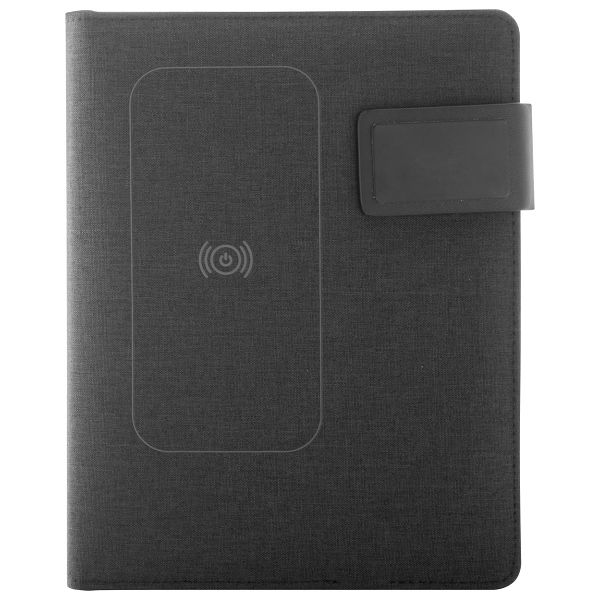 300D polyester document folder with 4000 mAh power bank, 16 GB USB flash drive, built-in wireless charger, tablet and pen holder and 20 lined sheets notepad. With USB charger cable.Veličina proizvoda:
