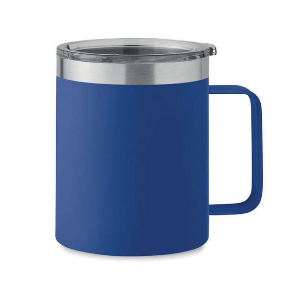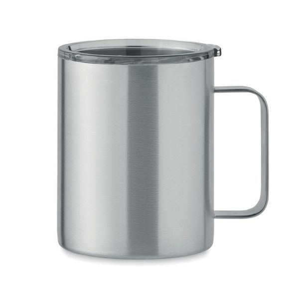 Dvoslojna šalica od recikliranog nehrđajućeg čelika (90% recikliranog nehrđajućeg čelika i 10% nehrđajućeg čelika) s kliznim poklopcem za otvor za gutljaj. Kapacitet: 300 ml.