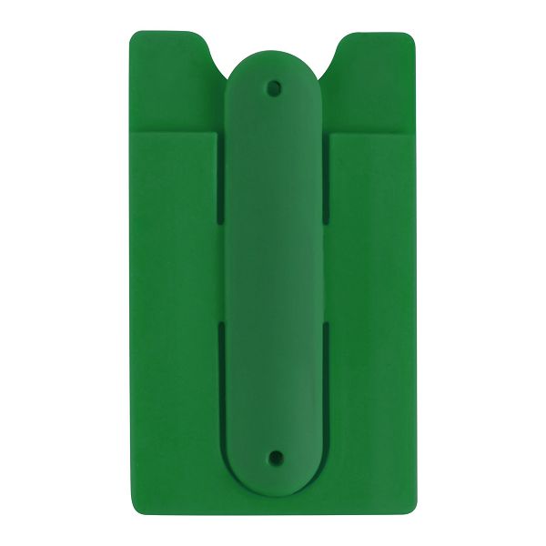 Silicone, self-adhesive mobile holder with card holder pocket.