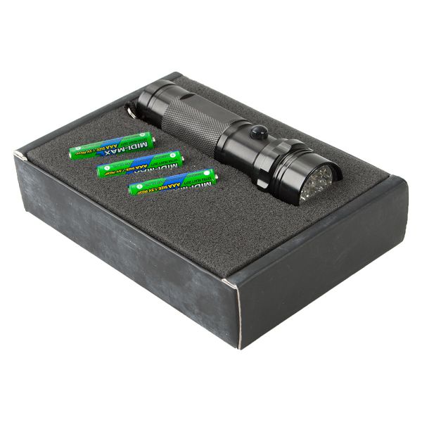 Aluminium, 14 LED flashlight in black gift box. With 3 AAA batteries.Veličina proizvoda: