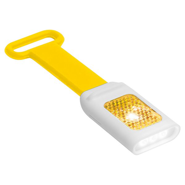 Plastic flashlight with silicone strap, 4 LED and reflective inlay. With button cell batteries. The flashlight can be also fixed on bicycle handlebars.Veličina proizvoda: