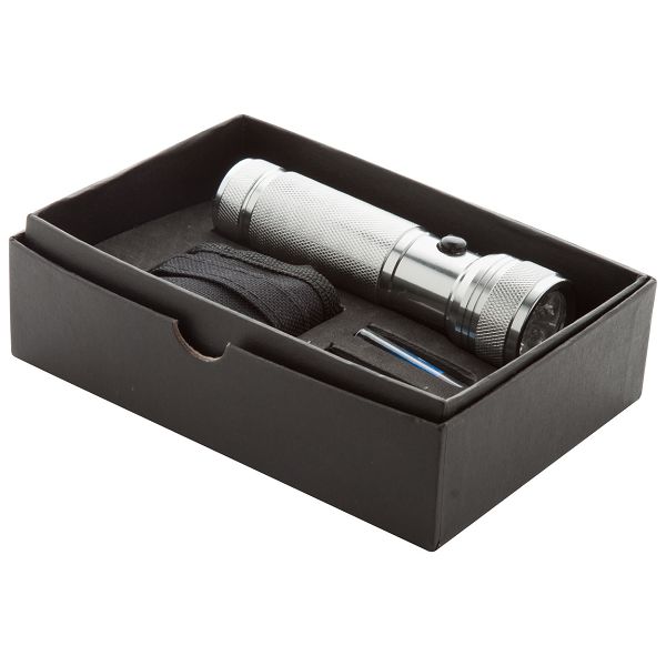 12 LED aluminium flashlight with polyester case. In black gift box with 3 AAA batteries.Veličina proizvoda: