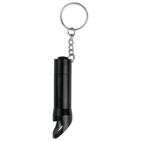 Mini, aluminium flashlight with 3 LED, bottle opener and keyring. With button cell battery.Veličina proizvoda: