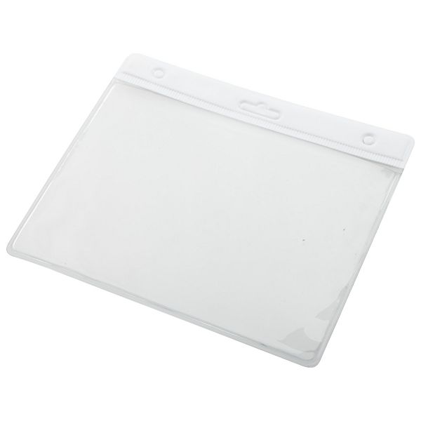 Transparent PVC badge holder with solid colour header.