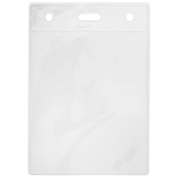 Transparent plastic badge holder for lanyards.