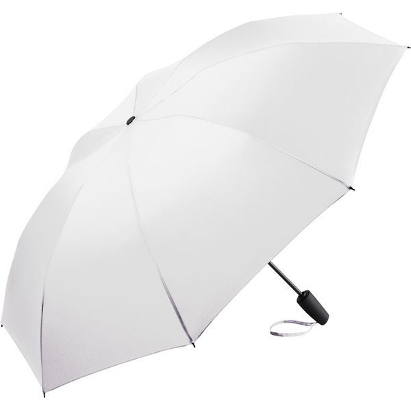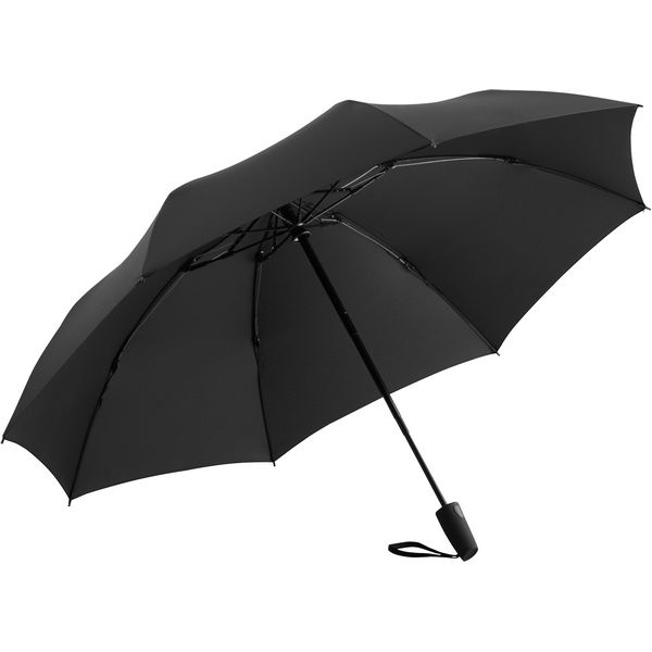 3-dijelni okvir s crnom čeličnom osovinom, ručka mekana na dodir s integriranim gumbom i mogućnošću reklamiranja, crni plastični vrhovi, torbica s čičak kopčom, otvara se i zatvara automatski, obrnuti mehanizam za otvaranje i zatvaranje, sustav otporan na vjetar, 58 cm/8 dijelova Materijal: