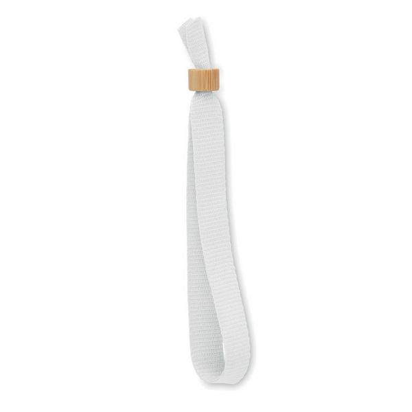 Narukvica za događaje od 300D RPET poliestera s bambusovim prstenom za zatvaranje. Veličina narukvice 34 cm i širine 1,5 cm. Bambus je prirodni proizvod, moguće su male varijacije u boji i veličini po artiklu, što može utjecati na konačni rezultat dekoracije.