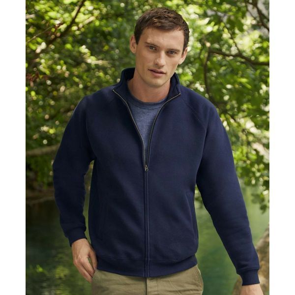 Jedna traka od žerseja, raglan rukavi, pletene manžete na rukavima i porubu, skriveni patentni zatvarač za bolju mogućnost ispisa, 2 našivena džepaMaterijal: