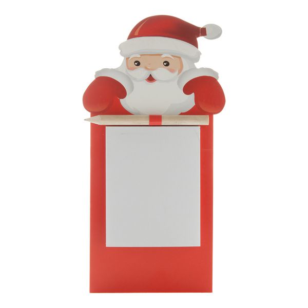 Santa Claus shaped fridge magnet with 40 sheets notepad and mini wooden pencil.