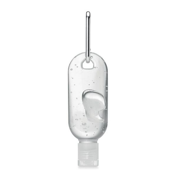 Gel za čišćenje ruku u PET boci za ponovno punjenje s čepom na preklop i karabinerom. Bez alkohola. Kapacitet 30 ml.