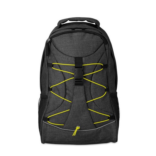 Ruksak od 600D dvobojnog poliestera sa šarenim kontrastnim prednjim dijelom i svijetlećom vrpcom na prednjoj ploči. Mrežasti džepovi s obje strane.