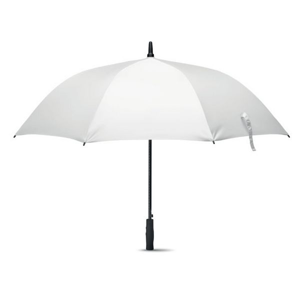Kišobran od 27 inča s automatskim otvaranjem i otporan na vjetar, izrađen od 190T svile s drškom i rebrima od stakloplastike. Crni plastični vrhovi i gornji dio. Ravna crna ABS ručka s gumenom završnom obradom. Ručno zatvaranje.