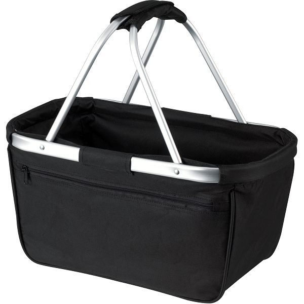 Košara za kupovinu s aluminijskim okvirom i prednjim džepom na patentni zatvarač, sklopiva, veličina: 45x25/45x25cmMaterijal: