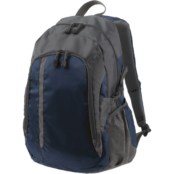 Podstavljene naramenice, veliki prednji džep s patentnim zatvaračem s umetnutim torbicama i otvorom za slušalice, bočni mrežasti džepovi i traka za vezivanje, veliki glavni pretinac s pretincem na uvlačenje, kapacitet: 21l, veličina: 31x48x16cmMaterijal: