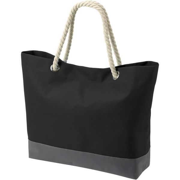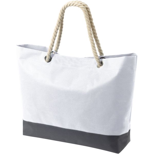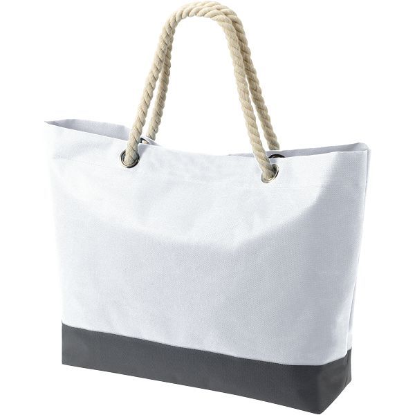 Veliki shoper s ukrasnim prstenom na ušicama i vezicama, glavnim pretincem s visećim organizatorom na patentni zatvarač, veličina: 46/60x40x14 cmMaterijal: