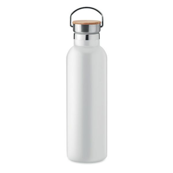 Dvoslojna termosica od nehrđajućeg čelika s poklopcem od bambusa i ručkom za nošenje. Kapacitet: 750 ml. Ne propušta. Bambus je prirodni proizvod, moguće su male varijacije u boji i veličini po artiklu, što može utjecati na konačni rezultat ukrašavanja.