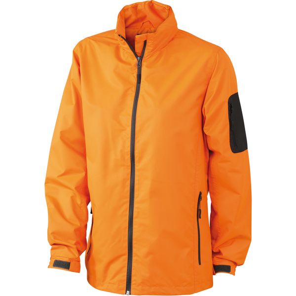 Usko kojen model, otporan na vodu (1500 mm vodenog stupca), kapuljača integrirana u ovratnik, elastična užad s čepom na kapuljači i rubu, podstavljeni prednji patentni zatvarač sa štitnikom za bradu, džep za mobilni telefon, 2 bočna džepa s patentnim zatvaračem, džep na rukavu, džep na rukavu
