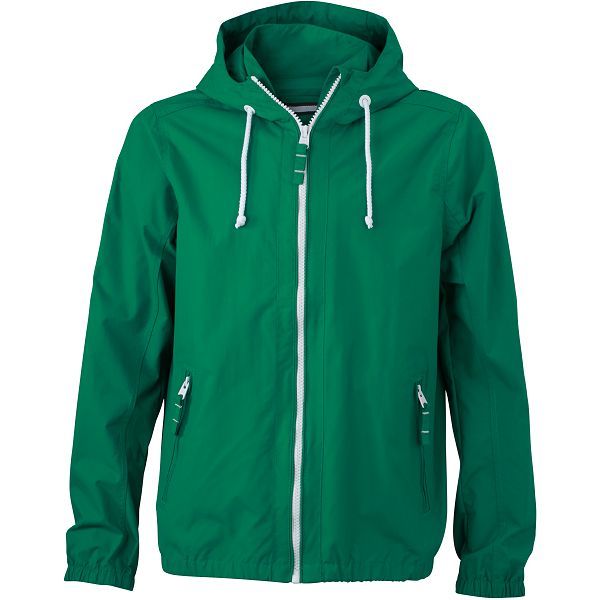 Otporan na vjetar i vodu (vodeni stupac 1500 mm), kapuljača s poklopcem s uzicom u kontrastnoj boji, vjetrobran cijelom dužinom sa štitnikom za bradu, 2 bočna džepa s patentnim zatvaračem, patentni zatvarači u kontrastnoj boji