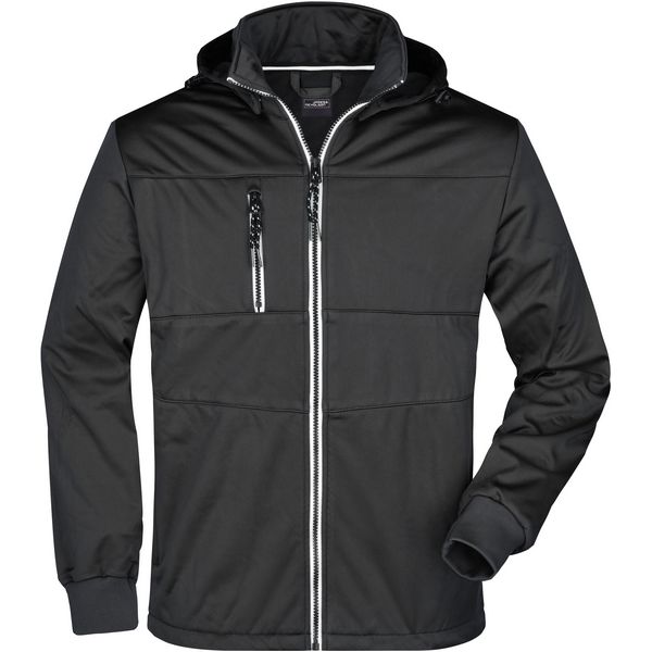 Otporan na vjetar i vodu (vodeni stupac od 5000 mm), prozračan i propustan za vodenu paru, stojeći ovratnik, odvojiva kapuljača, elastična uzica s čepom na kapuljači i rubu, pletene manžete, 2 bočna džepa i 1 džep na prsima s patentnim zatvaračem, šavovi nisu zapečaćeni Materijal: