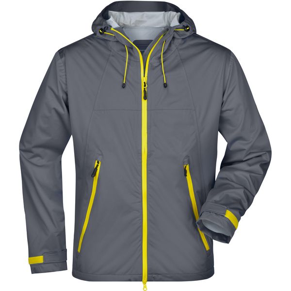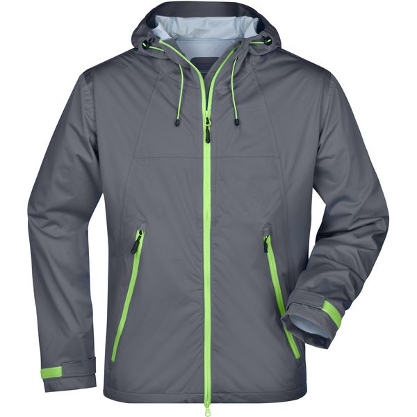 Ergonomski kroj s dužim leđima, otporan na vjetar i vodu (10 000 mm vodenog stupca), vodootporni patentni zatvarači, vodootporna funkcionalna tkanina s TPU membranom, prozračna (5000 g/m² u 24 sata), podesiva kapuljača, dvosmjerni patentni zatvarač, 2 bočna džepa Materijal: