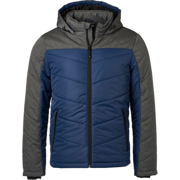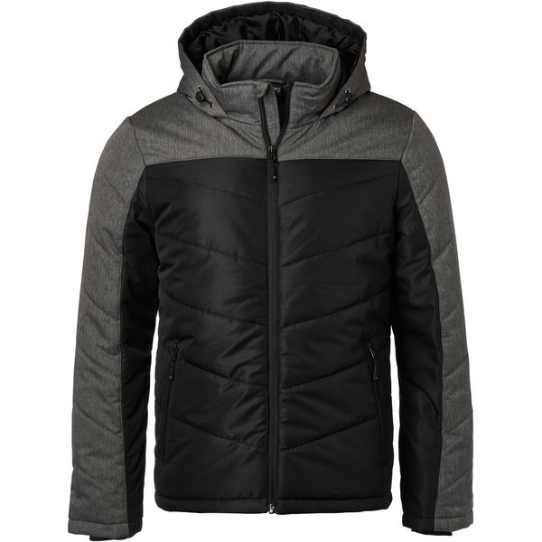 Podstavljena jakna od mješavine materijala s prošivanjem i pregradnim šavovima, otporna na vjetar i vodu (1500 mm vodenog stupca), podignuti ovratnik, podesiva kapuljača, elastične manšete iznutra, vjetrobran cijelom dužinom, unutarnji džep, bočni džepovi s patentnim zatvaračem, pristup ukrasima na Materijal: