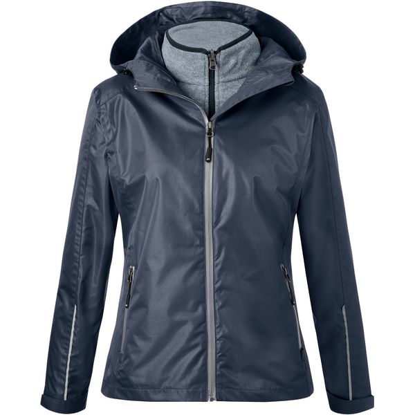 Vanjska jakna: Usko kojen model, otporna na vjetar i vodu (5000 mm vodenog stupca), vodootporni patentni zatvarači, prozračna (5000 g/m² u 24 sata), kapuljača s poklopcem s regulacijom širine, podstavljeni prednji patentni zatvarač sa štitnikom za bradu, 2 bočna džepa s patentnim zatvaračem, unutarnja
