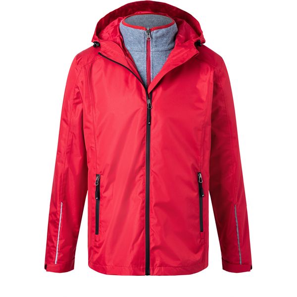 Vanjska jakna: otporna na vjetar i vodu (5000 mm vodenog stupca), vodootporni patentni zatvarači, prozračna (5000 g/m² u 24 sata), kapuljača s poklopcem s regulacijom širine, podstavljeni prednji patentni zatvarač sa štitnikom za bradu, 2 bočna džepa s patentnim zatvaračem, unutarnji džep, zapečaćeni šavovi