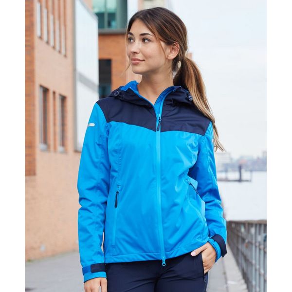 Usko kojen model, otporan na vjetar i vodu (10 000 mm vodenog stupca), vodootporni patentni zatvarači, prozračni i propusni za vodenu paru (5000 g/m² u 24 sata), podesiva kapuljača, podešavanje širine na manžetama s čičak kopčom, YKK patentni zatvarači, po cijeloj dužini