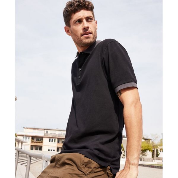 pojas s 4 gumba u kontrastnoj boji, pleteni polo ovratnik i manžete u kontrastnoj boji, bočni rasporiMaterijal: