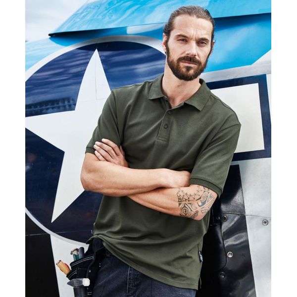 Ovratnik i manšete pletene polo majice, 3 gumba s gumbima u tonu, bočni raspori, UV zaštita 50, pogodno za sušenje u sušilici