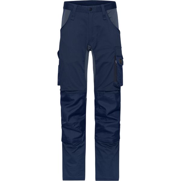 Tanak kroj, omče za remen, YKK patentni zatvarači, džepovi koji se uvlače, nekoliko džepova za alat, džepovi za jastučiće za koljena ojačani Cordurom®, džepovi ojačani Cordurom®, otporan na trganje u tri smjera prošiven šav, čvrsta i izdržljiva mješovita tkanina, udobna za nošenje zahvaljujući elastici Materijal: